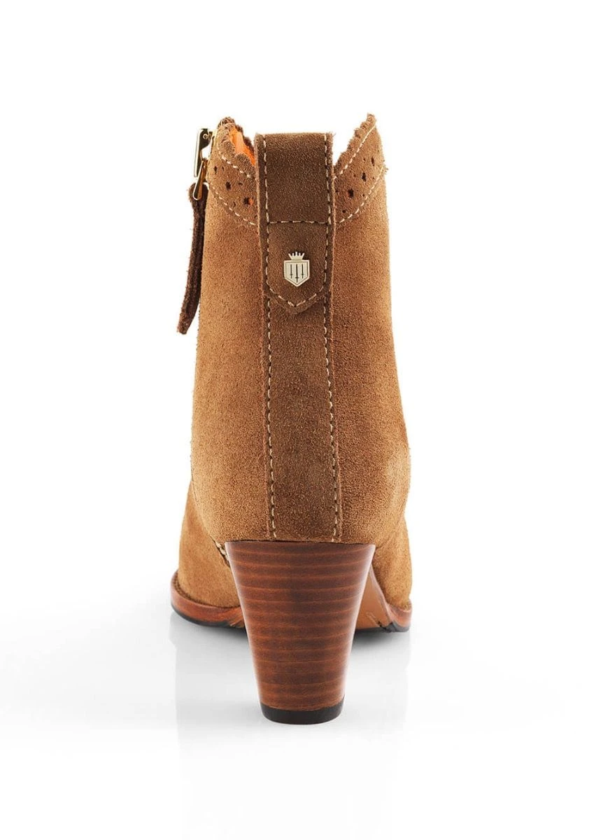 Taking some of the most distinguishable elements of our definitive tall boot, the Regina Ankle draws from our timeless piece, whilst retaining individuality. This Ankle boot is, in comparison, designed with a more elegant arched block heel and pointed toe, yet retains the wooden /rubber sole and scalloped design edging. With signature shield detailing on the rear pinch tab, the Regina Ankle can be slipped on easily – finishing an outfit, whilst drawing on the classic features of our iconic knee-high boot.