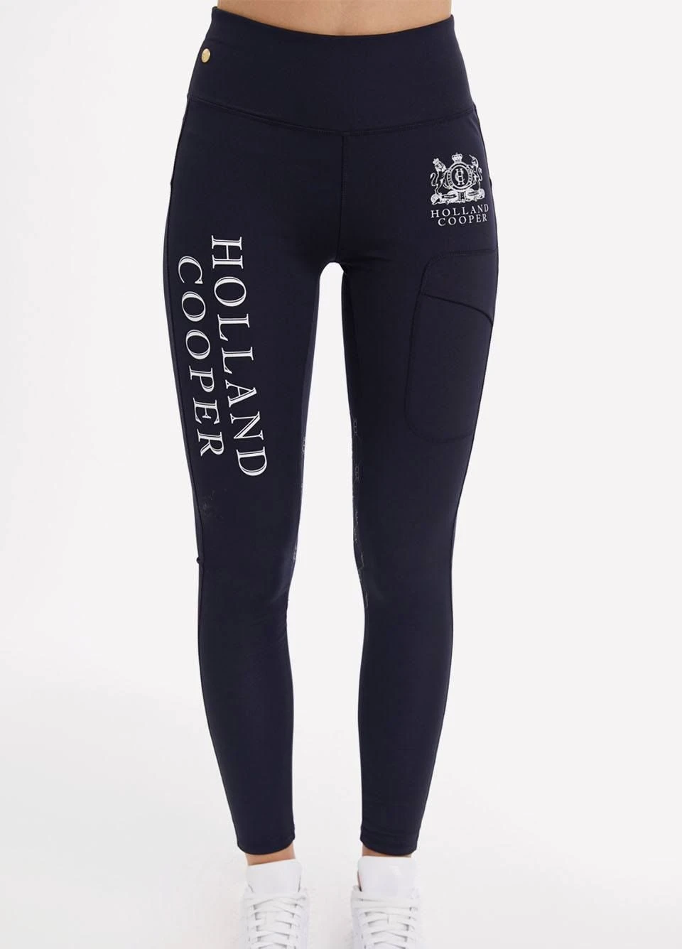 - Signature HC branding with monogram grip print on inner knee