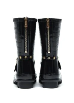 - Gold metal zip running down the back of the wellington