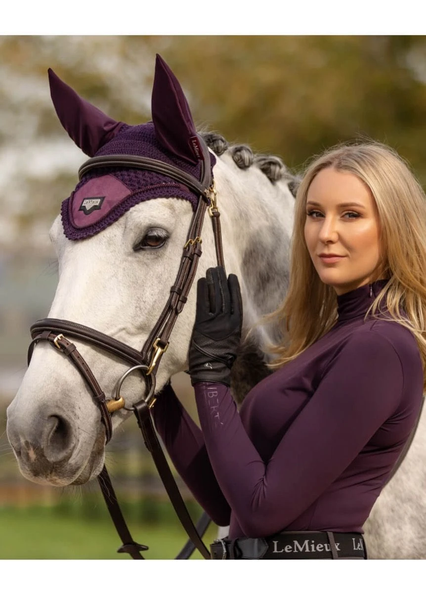 Sporting Β the signature LeMieux Loire embossed metal motif these luxurious fly hoods are a stylish addition to the collection. Beautifully hand made from three-way knitted crochet with a luxurious satin fabric front piece and soft stretch Lycra ears.