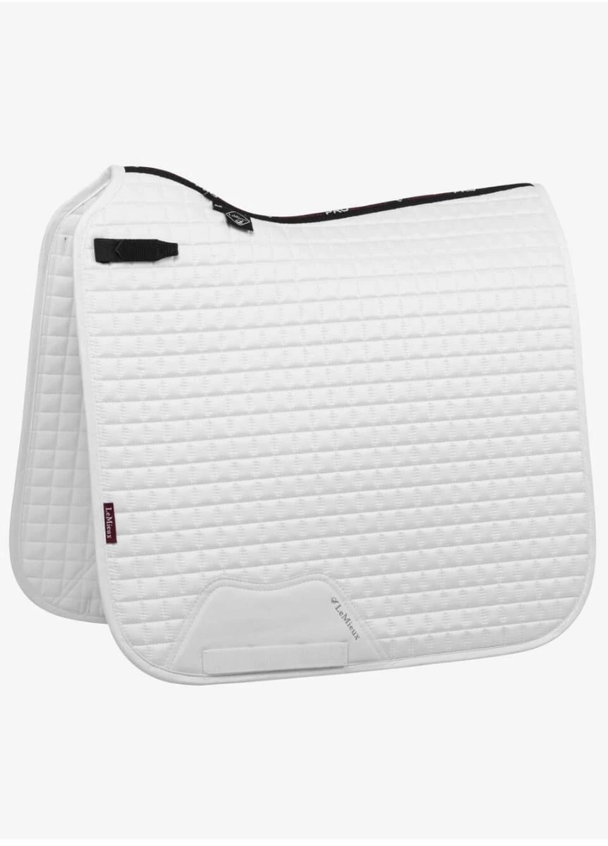 Now with the Super Soft Suede Binding & New PU Leather girth protection area, this beautiful suede Dressage square sets new standards in style & comfort. Now established as the iconic LeMieux look when combined with matching polo bandages and fly hoods there are colours to suit most horses and tastes. Designed to fit a wide range of dressage saddles with its high wither and elasticated D-Ring tabs .