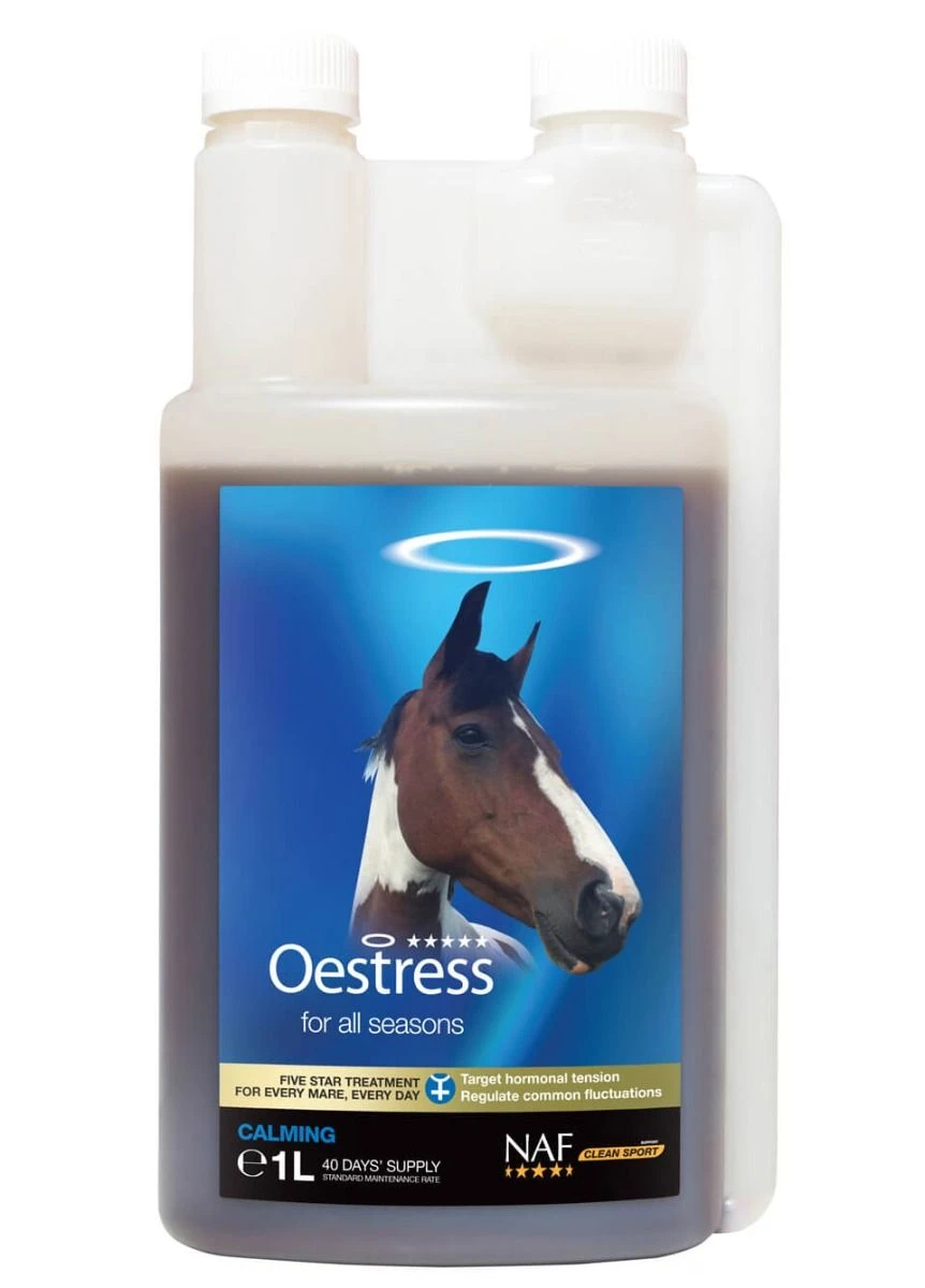A very popular supplement for the very moody mare, Oestress from NAF has always been a favourite amongst many of our customers, who struggle with their mares’ mood swings! The supplement works in harmony with the natural oestrus cycle, and balances out the hormones with the help of carefully selected herbal components. As well as focusing on the hormone cycle, Oestress also contains magnesium, which targets any tension in the muscles and aids in the overall calmess of your mare. NAF advise that Oestress should be fed daily during Spring/Summer, and can be increased in unison with the oestrus cycle, and if needed, it can be fed all year round.Â