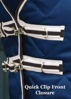 The WeatherBeeta ComFiTec 1000D Diamond Quilt Detach-A-Neck Medium is a stylish and durable stable rug with a 1000 denier polypropylene diamond quilt outer with warm 220g of polyfill. Featuring a 210T polyester lining, quick clip front closure with touch tape for maximum adjustability, Cozi-Cuff for maximum comfort with memory foam wither relief pad which contours to the horse’s shape and lifts the rug off the withers to reduce rubbing and provide added comfort. This rug also features traditional side gussets for natural movement, low cross surcingles and tail cord.