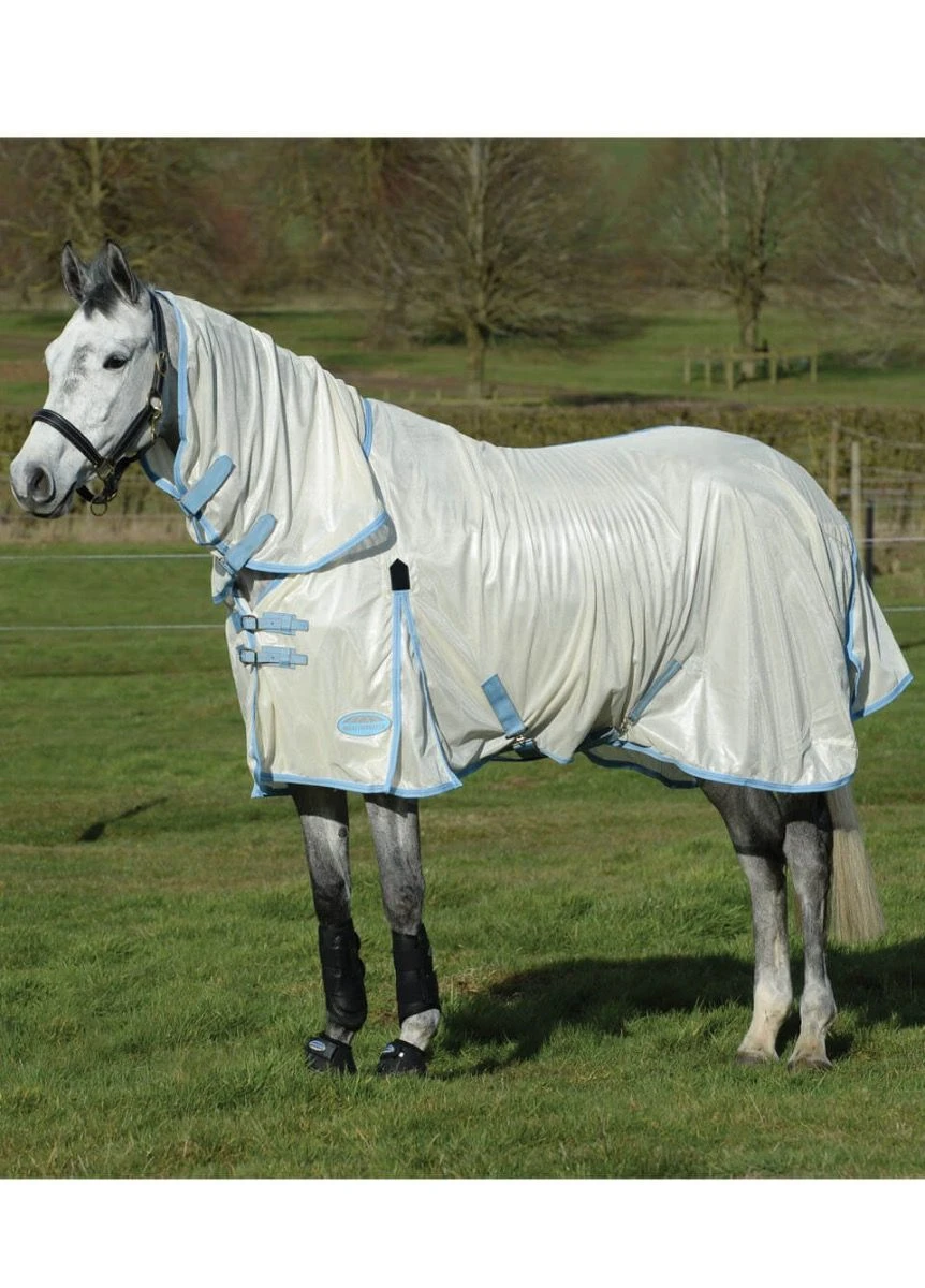 Softmesh fly protection, that’s breathable and cool. The WeatherBeeta ComFiTec Essential Mesh II offers 65%+ UV block in a classic style at a great price. Produced from soft mesh, this fly protection has a 210T nylon lining at the shoulders, mane and tail. It features twin adjustable buckle front closure with touch tape, traditional side gusset for natural movement, low cross surcingles, large tail flap and adjustable removable leg straps.